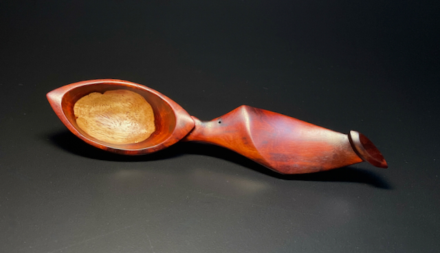 Narra Spoon - 6.5 x 1.5 x 1 - 2025 - This wood came from the Philippines - noteworthy is the dark dividing line between the heartwood and sapwood - SOLD - $725